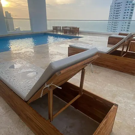 The spacious Apto Navy 6 Tripulantes Apartment is situated in a beach area of Cartagena, offering a solarium and a Jacuzzi, about 10 minutes' drive from Plaza Bolivar. Wi-Fi and parking are provided for guests' business or leisure needs.